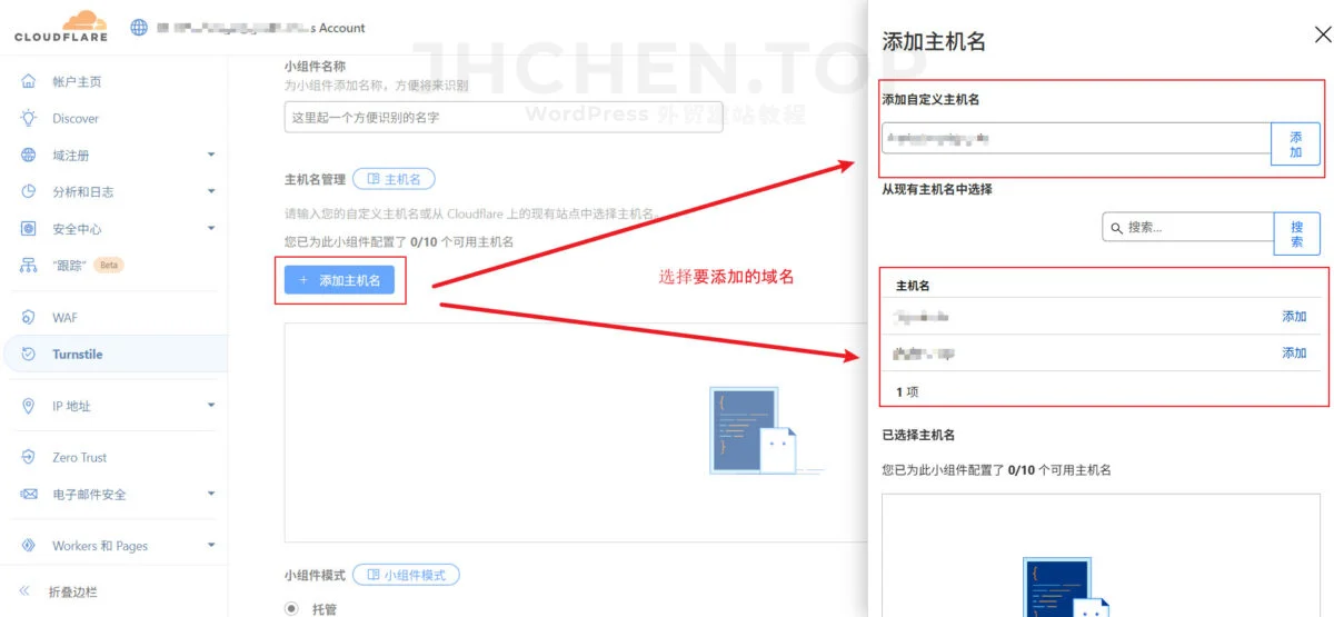 最关键的一步:你得在创建小部件的时候,把你想要用 Turnstile 的域名都加进去,才能正常工作。